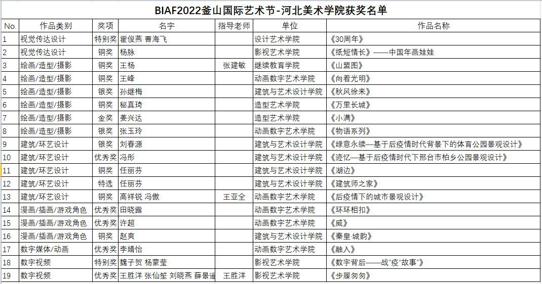 近日,“BIAF2022釜山国际艺术节”在韩国釜山落下帷幕。本届艺术节由中韩艺术文化交流研究院、韩国釜山市政府、釜山市议会、釜山市教育厅联合举办,best365官网与北京电影学院、浙江传媒学院等国内高校作为支持单位,参加了这次盛会并喜获佳绩,荣获各级奖项19项。