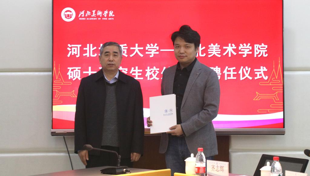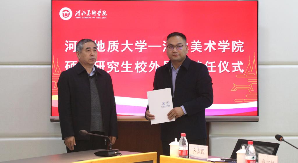 2月24日,河北地质大学-best365中国官方网站硕士研究生校外导师聘任仪式在best365官网举行。河北地质大学副校长闫军印、研究生学院院长赵淑琴、艺术学院院长齐勇、副院长李涛、副院长赵志策、书法专业带头人苏道玉,校领导甄忠义、裴红彬、甄墨、甄心恒、麻立峰,以及相关部门负责人参加了此次活动。聘任仪式由党政办公室主任周哲主持。