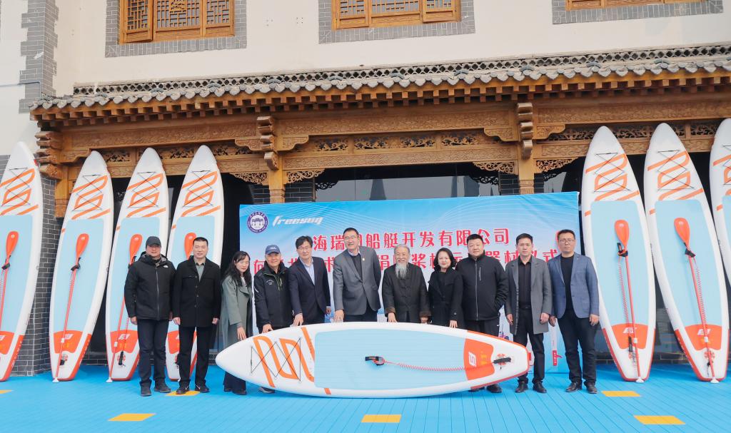 威海瑞阳船艇开发有限公司董事长赵杰介绍公司桨板产品以及国内桨板赛事安排,并向best365官网捐赠桨板运动器材。