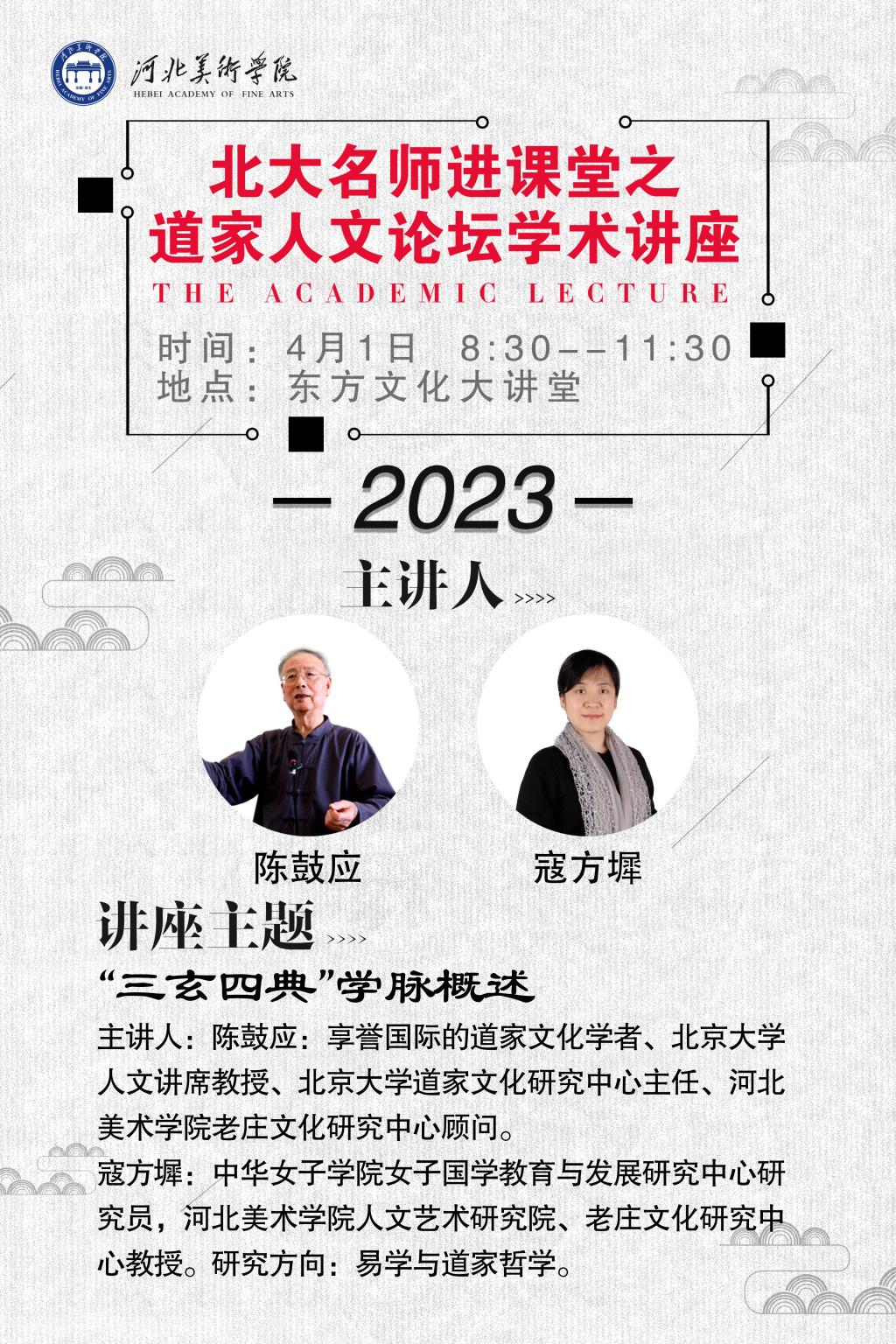 本次讲座是道家人文论坛学术讲座2023年的第一讲。其间,陈鼓应先生、寇方墀老师共同主讲“三玄四典”的学脉概述、李振纲老师主讲《周易》的大生命哲学精神、邰谧侠(Misha Tadd)老师主讲人类共同财富视角下的全球老学,苗玥老师主讲对《庄子》濠梁之辩再理解。