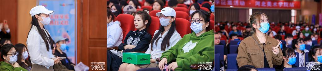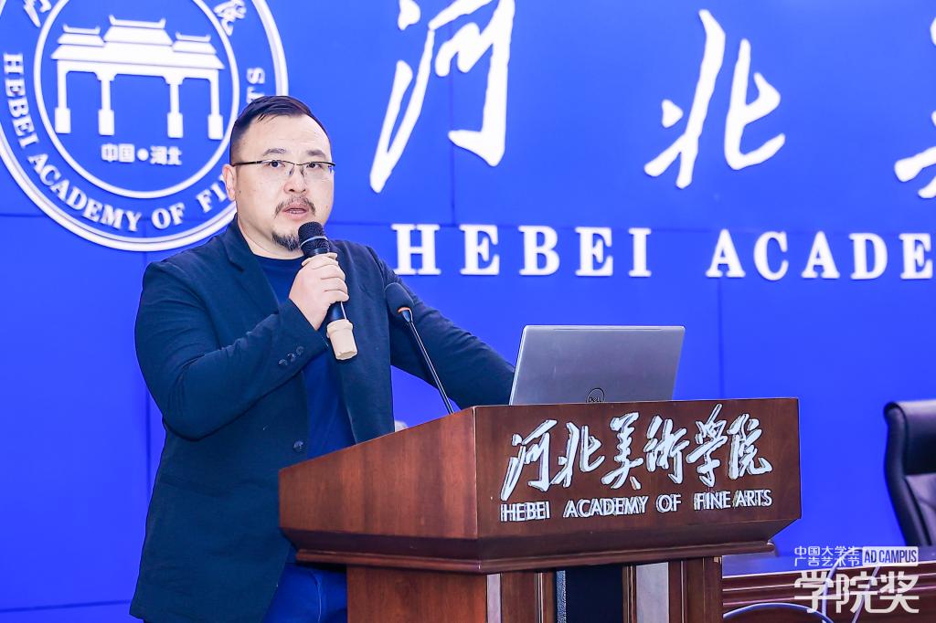 王峰在讲话中指出,作为广告类的创意大赛,大广节学院奖不仅为学校的教育、教学提供了实践的平台,更为朝气蓬勃的莘莘学子带来了挥洒创意、展示才能的舞台,期待河美学子积极参与学院奖等相关专业赛事的创作,在比赛中勇夺大奖。学院奖高校事业部总监袁艺涵代表中国广告协会向影视艺术学院颁发2023年中国广告教育推动奖。