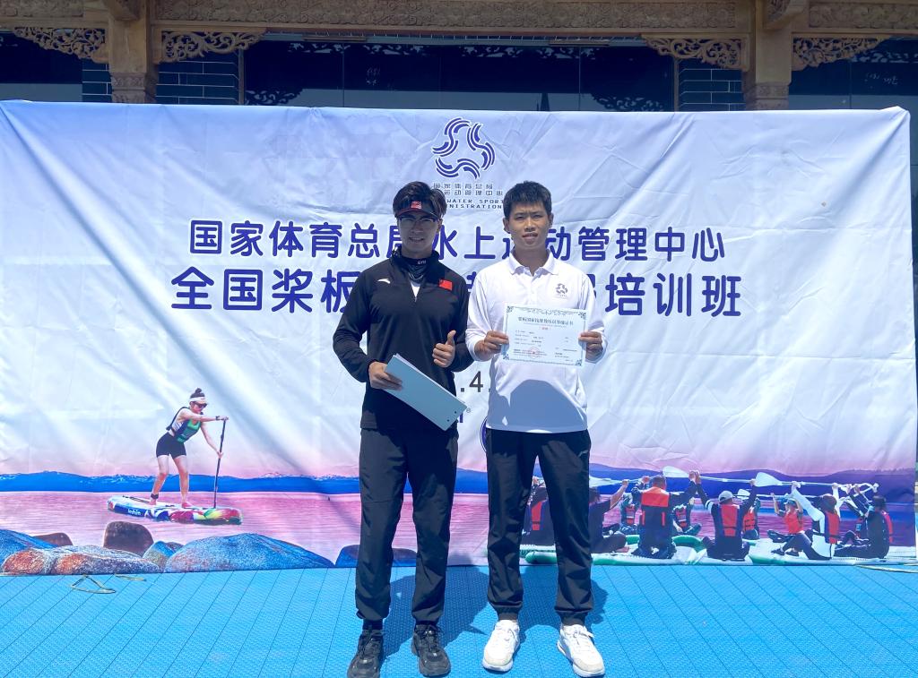 经过系统学习及专业考核后,多位教师顺利获得国家体育总局水上运动管理中心颁发的“全国桨板初级教练员”证书,此后可开展桨板一星、二星运动水平教学与等级培训工作。