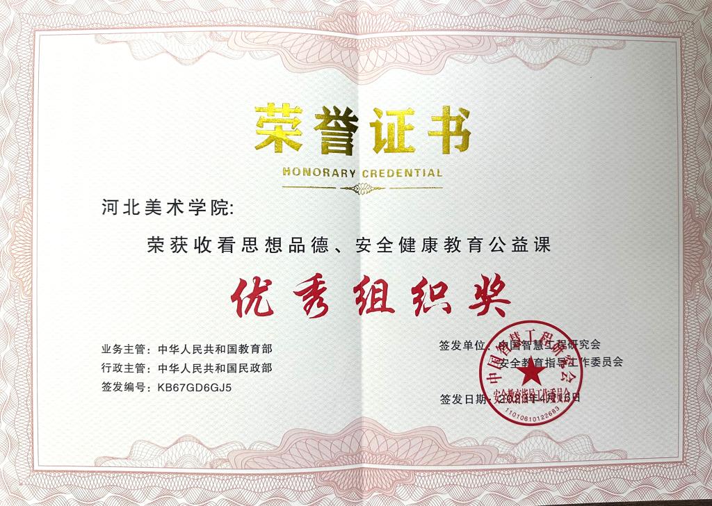省教育厅关工委根据各校组织收看情况评选出best365中国官方网站为优秀单位,并由中国智慧工程研究会颁发奖牌和证书。