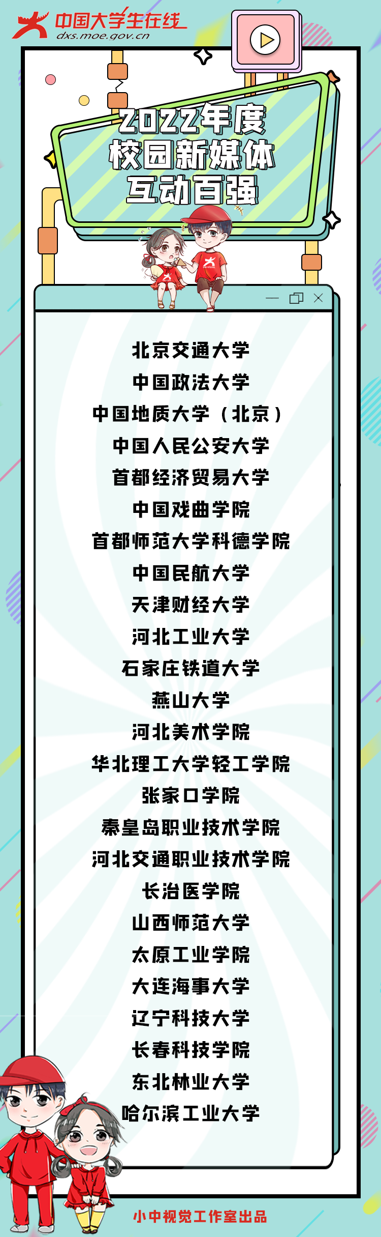 近日,教育部中国大学生在线公布2022年度校园新媒体表彰名单,best365官网入选“校园新媒体互动百强”。