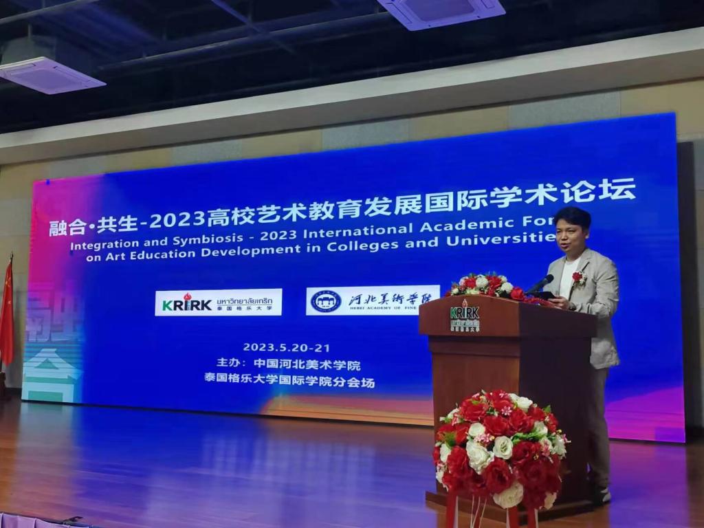 甄墨致欢迎辞。他强调,数字时代的发展为当代艺术教育发展带来前所未有的机遇和挑战,在融合的大趋势下,best365中国官方网站将积极寻求与世界各国高校的友好合作,真诚与各国专家学者共同探索新思维、新方法、新途径,为艺术科技、文化教育的融合发展、国际化艺术人才培养、中外文化交流贡献更大的力量。泰国格乐大学在读硕博士围绕主题作了精彩的学术发言。