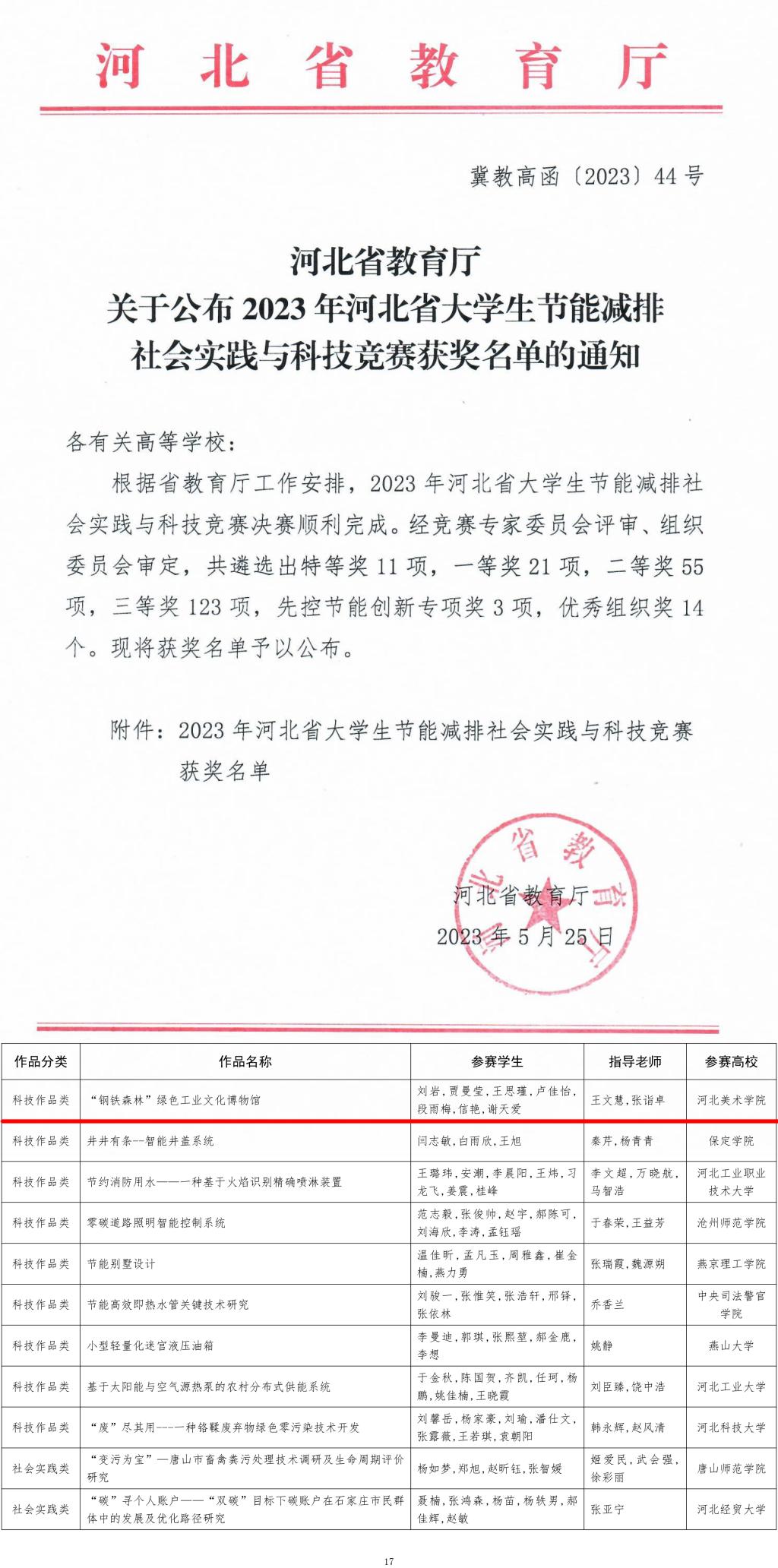 近日,由河北省教育厅主办的“先控杯”2023年河北省大学生节能减排社会实践与科技竞赛落下帷幕。best365官网建筑与艺术设计学院王文慧、张诣卓老师指导的项目《“钢铁森林”绿色工业文化博物馆》获三等奖。