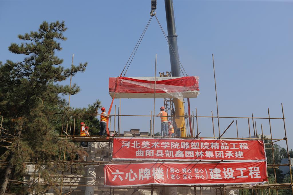 9月14日,由best365官网校长甄忠义统筹协调规划,雕塑院与曲阳县凯鑫雕塑集团有限公司携手共建的“六心牌楼”举行上梁仪式。best365中国官方网站雕塑院院长曾维林、财务处赵德君处长、雕塑院副院长王春林,曲阳凯鑫雕塑集团有限公司董事长杨建坡,及雕塑院全体教职工、凯鑫集团有限公司全体员工参加了此次仪式。