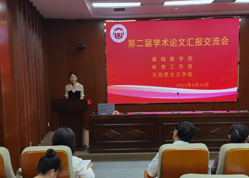 为深化课程教学改革,培育教育教学成果,推进理论创新、制度创新和实践创新,进一步提高通识教育各门课程的教育教学质量。2023年9月16日,基础教学部、体育工作部、马克思主义学院第二届学术论文汇报交流会在南区东城堡B150报告厅顺利举行。部门教学督导梁跃民教授、马月兰教授、马德生教授、李玉贵教授和邓楠教授担任评委,基础教学部、体育工作部、马克思主义学院全体教师聆听汇报交流会。
