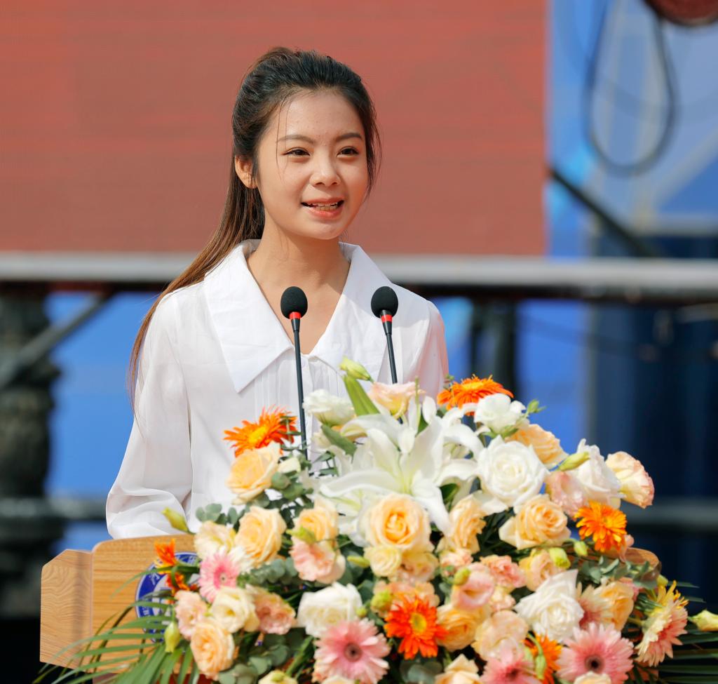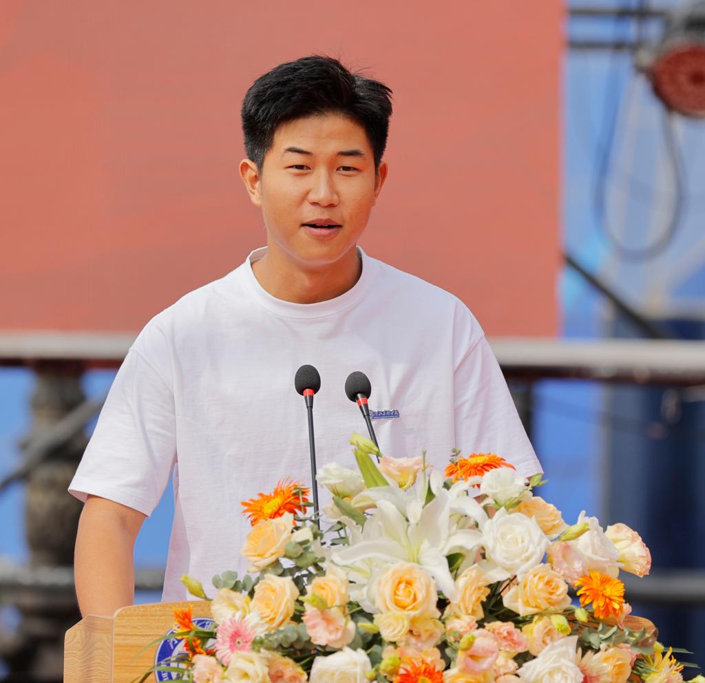 影视艺术学院路雯皓老师代表教师、影视艺术学院张泽岩同学代表在校生、河北地质大学艺术设计专业梁子杨同学代表联合培养研究生、来自尼日利亚的文慧同学代表留学生纷纷寄语新生,勉励新生严格要求自己、珍惜大好时光。影视艺术学院曹紫诺同学代表新生发言,表示一定尽快适应新生活、树立规则意识,不负青春,扬帆远航。