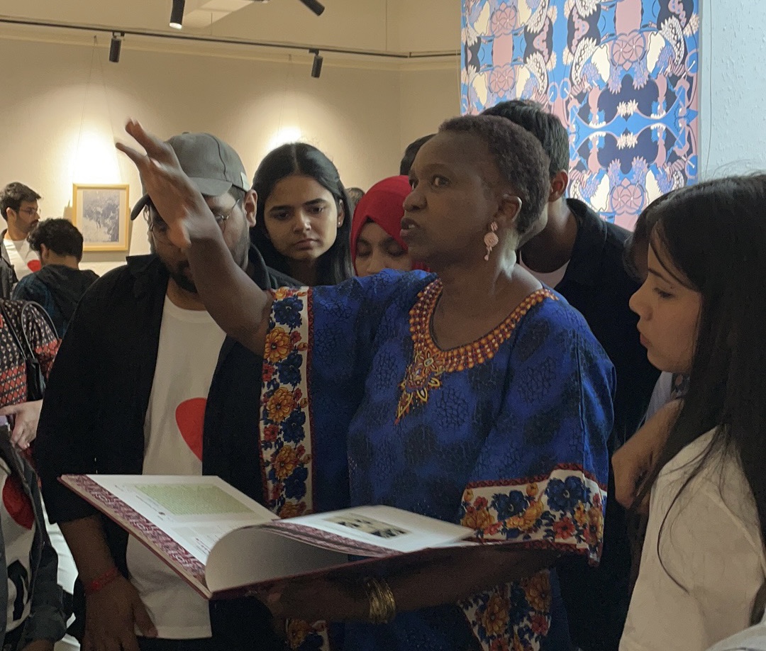在参观以“就是这样”为主题的南非大学Nombe Mpako教授个展过程中,Nombe教授与留学生们亲切讨论,讲述了她的创作理念和灵感来源。