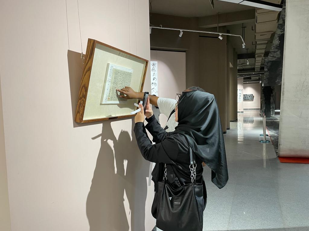 留学生们在参观曾翔先生的书法作品展过程中尝试了找字游戏。留学生踊跃参加,进一步加深了对汉字的理解和喜爱。