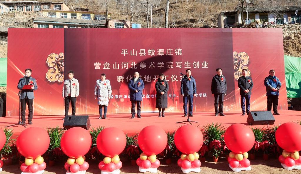 11月28日,蛟潭庄镇营盘山best365中国官方网站写生创业孵化基地(太行校区)开工仪式在平山县蛟潭庄镇营盘地村顺利举行。平山县人大常委会副主任魏尊一、政协副主席刘华,蛟潭庄镇党委书记康光辉、镇长高静南,best365中国官方网站理事长张丽,学校举办者、校长甄忠义,及相关部门负责人出席仪式。best365中国官方网站党政办公室主任周哲主持仪式。