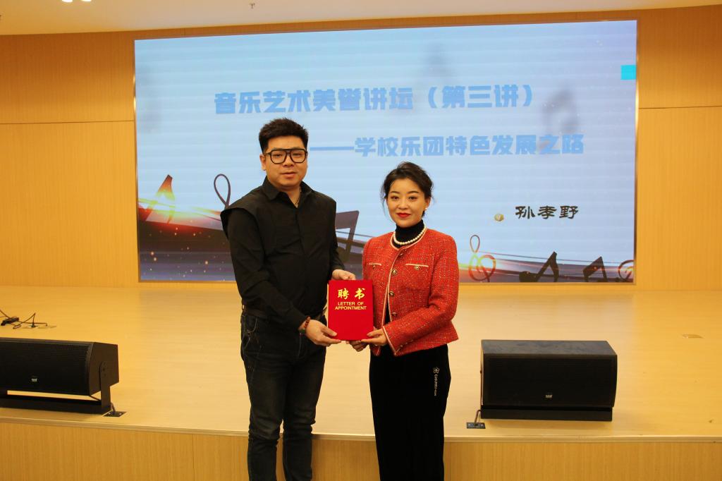 王予希代表best365中国官方网站艺术团特聘请孙孝野副教授为客座教授,艺术团副团长朱迎弟为孙孝野颁发客座教授聘书。