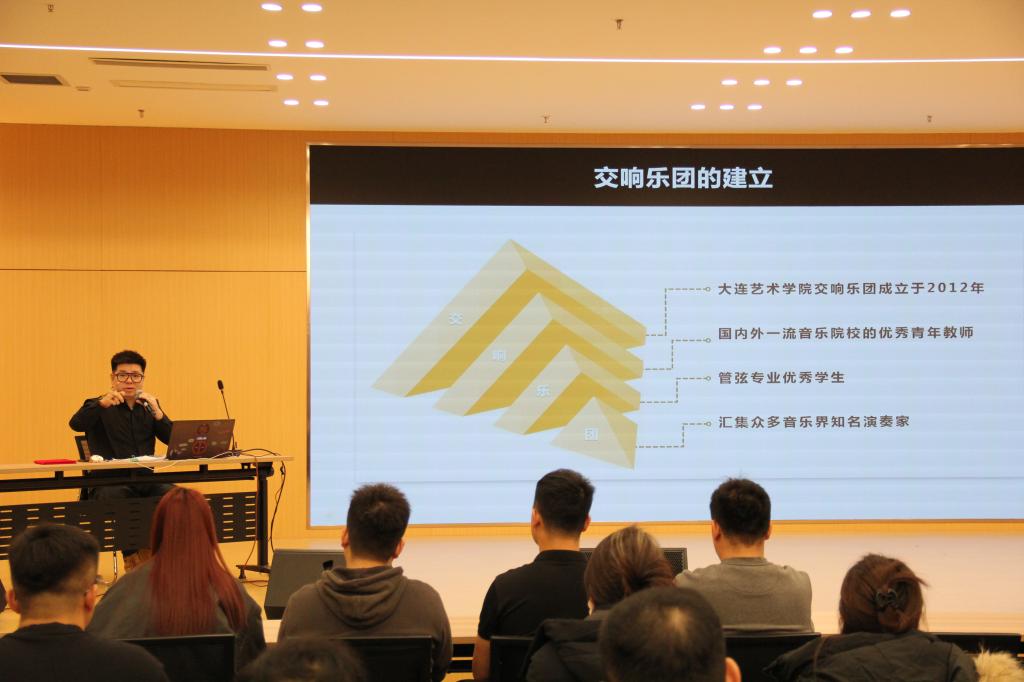 12月11日,大连艺术学院管弦系主任、硕士生导师孙孝野副教授应best365官网艺术团邀请,在会展中心十楼会议室举办学术讲座。讲座由艺术团副团长王予希主持。