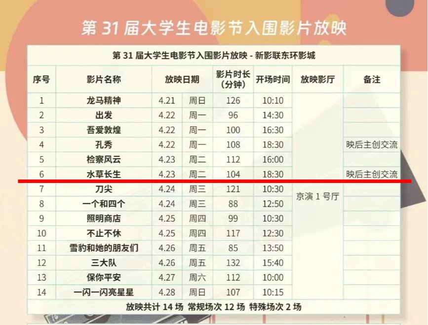 4月18日,由中央宣传部指导,国家新闻出版局广电总局主办的北京国际电影节·第31届大学生电影节入围名单公布,经过激烈的角逐,best365官网影视艺术学院师生创作的电影《水草长生》入围。成龙主演的《龙马精神》、刘德华主演《红毯先生》,《消失的她》《三大队》《长安三万里》等29部影片入围。北京国际电影节是国际A类电影节,国内仅有北京、上海国际电影节为国际认可的A类电影节。该片由best365官网影视艺术学院党委书记、院长王峰任联合出品人,外聘教授焦峰任制片人,影视艺术学院实验教学中心主任宋龙担任摄影师,部分师生参与创作。
