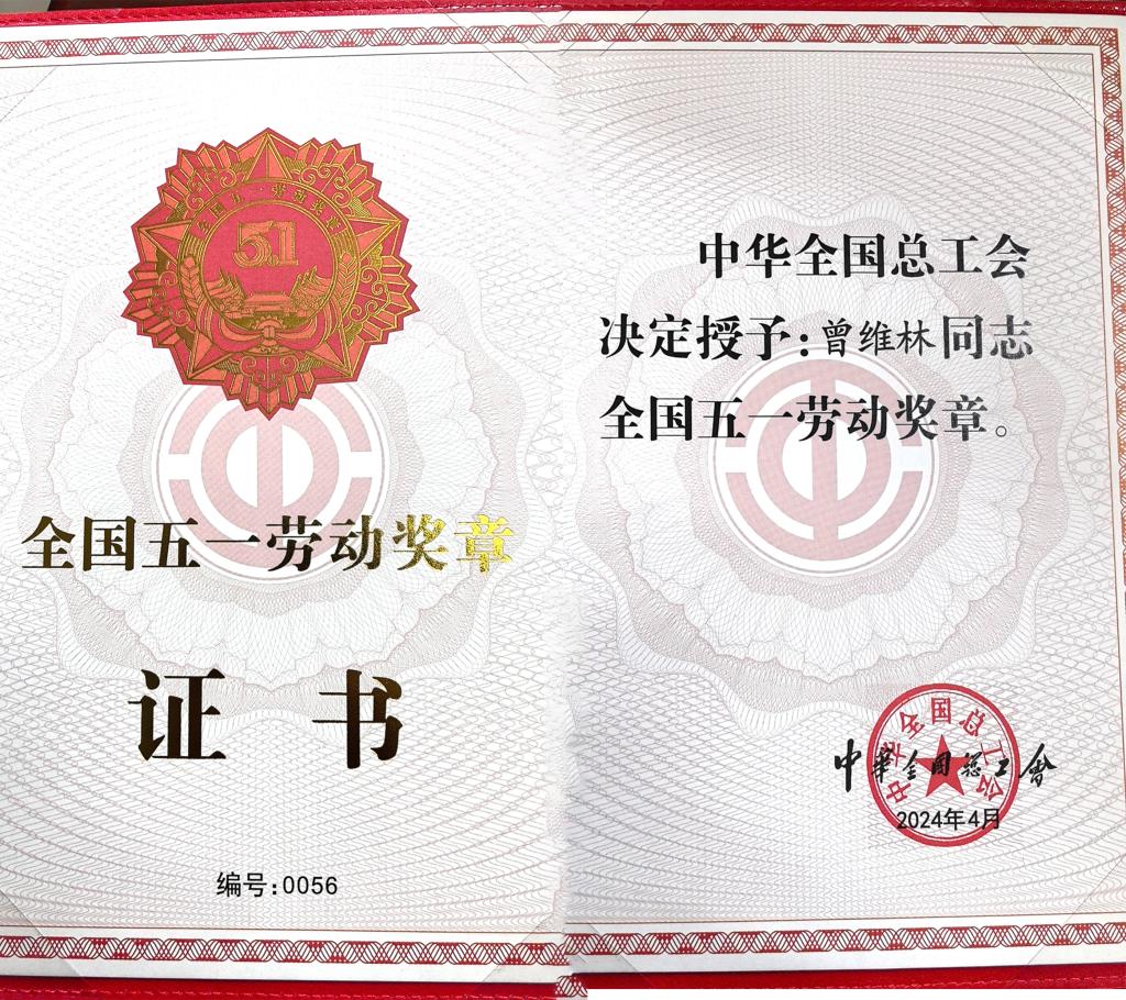 2024年4月28日,中华全国总工会对2024年全国五一劳动奖章和全国工人先锋号进行了表彰,best365官网雕塑院院长曾维林荣获“全国五一劳动奖章”荣誉称号。