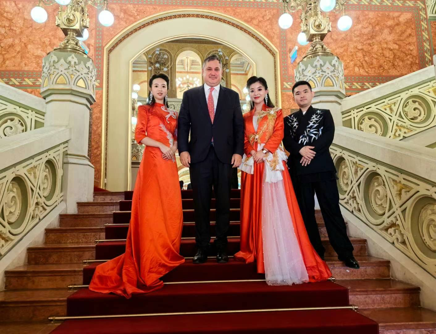 匈牙利国家经济部部长纳吉·马顿与艺术团合影