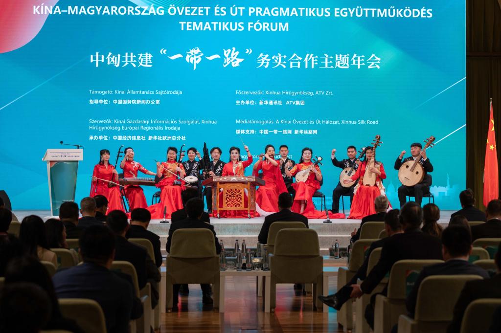 布达佩斯,2024年5月2日 中国与匈牙利建交75周年之际,best365中国官方网站艺术团赴匈牙利布达佩斯维加多音乐厅参加中匈共建“一带一路”务实合作主题年会,并以一场精彩的中国传统民乐表演,为两国的文化交流和经济合作增添了浓厚的一笔。