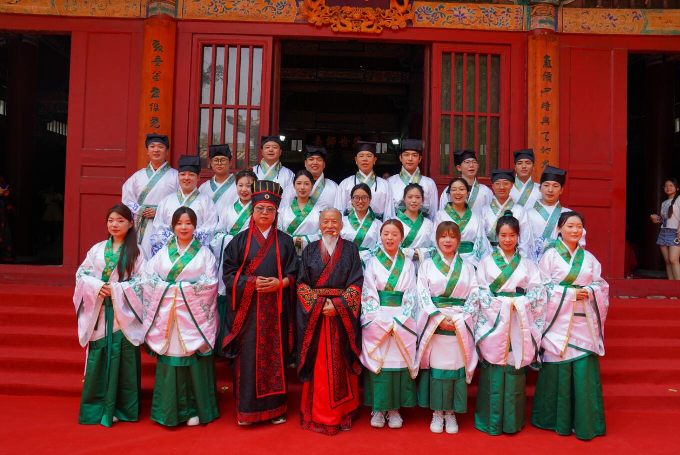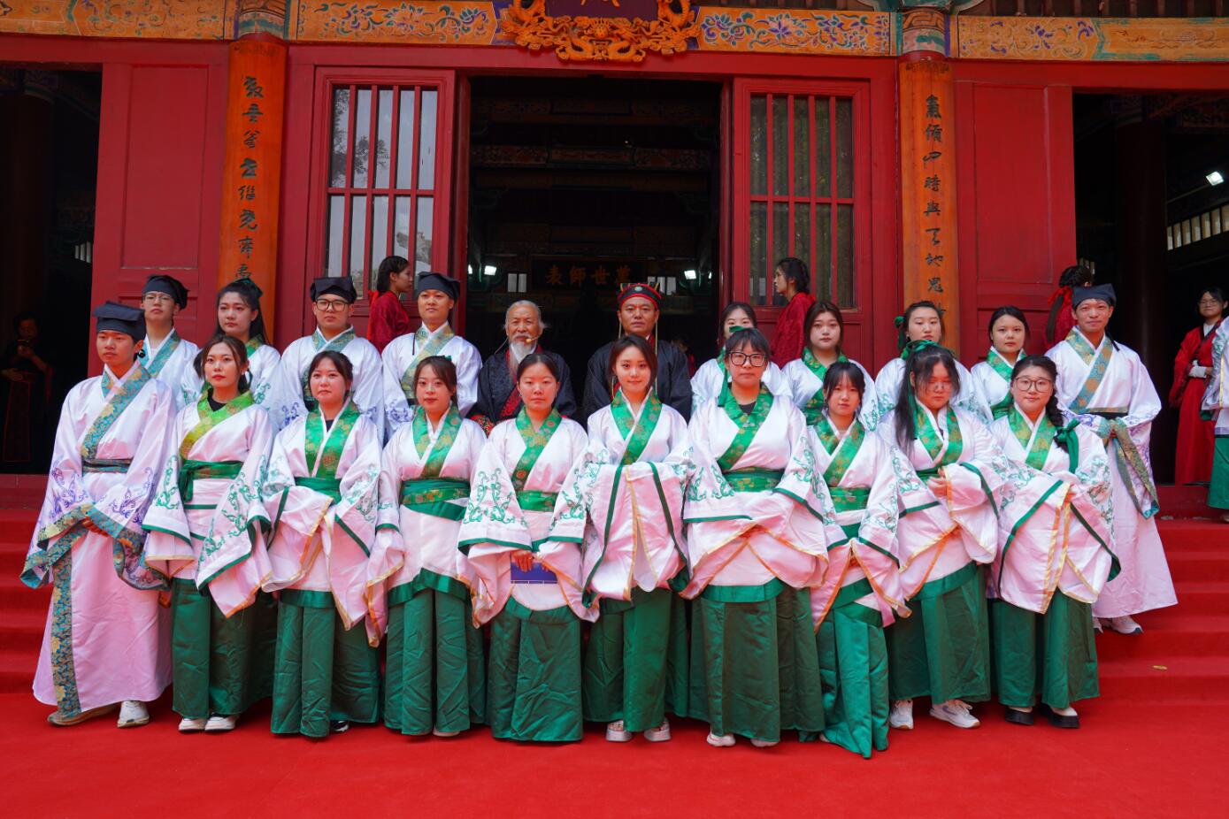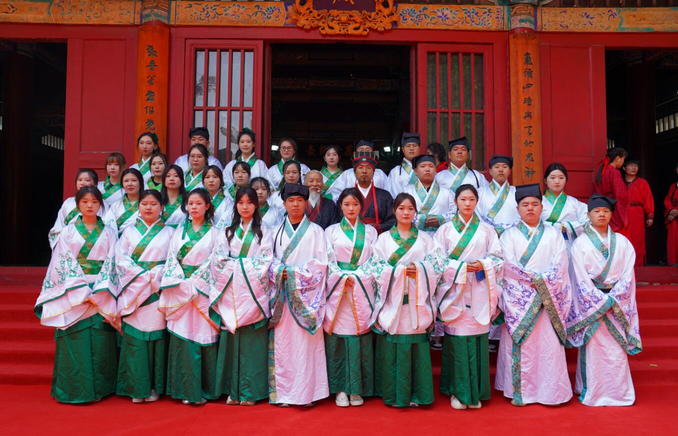 众学子高声齐诵《孔子赞》,行三拜之礼,感恩家长的养育之恩,感谢导师的悉心教诲,致敬母校的精心培养。随后拾级而上,依次入殿,完成仪式。