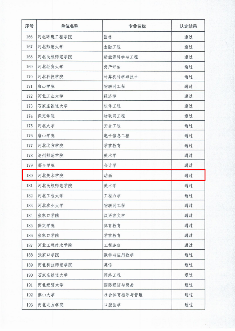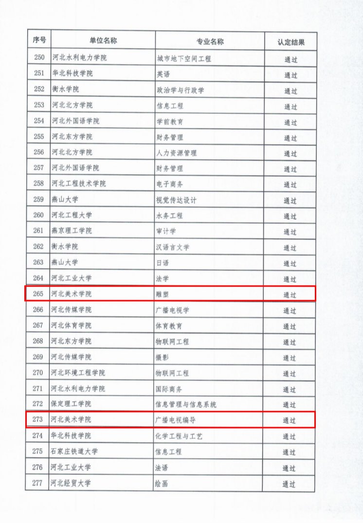 近日,河北省教育厅印发《河北省教育厅关于公布第二批省级一流本科专业验收认定结果的通知》(冀教高函〔2024〕27号),公布了2020年度立项建设的292个省级一流本科专业验收认定结果,best365官网提交验收的动画、雕塑、广播电视编导专业均顺利通过验收。