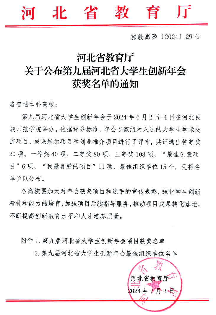 第九届河北省大学生创新年会由河北省教育厅、河北省高等学校创新创业教育教学指导委员会主办。年会以“智启河北 数创未来”为主题,分为学术交流项目、创业推介项目、成果展示项目三部分,共有43所高校的2534名师生、30余位专家和企业家等人士参会,是河北省范围最广、影响力最大的创新创业类盛会。