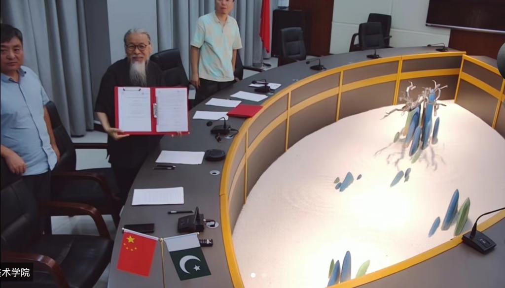 甄忠义表达了对两校合作的期待,并强调了艺术教育在促进不同文化间理解和友谊中的作用。Niaz Ahmad Akhter同样表达了对合作的积极态度,并赞扬了两校在艺术和教育领域的共同愿景。两校经过进一步的沟通达成友好合作共识,并签署合作协议。