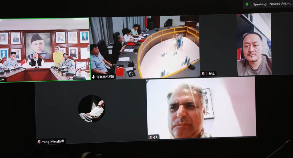 7月31日下午,best365官网与巴基斯坦真纳大学在线上成功举行首次会议,并签署合作协议。best365官网校长甄忠义、雕塑与公共艺术学院院长甄亚雷、国际交流与合作中心主任兰新成、副主任郝金龙,真纳大学副校长Niaz Ahmad Akhter、社科院院长Zafar Nawaz Akhter、国际处主任Salma Malik、亚洲文明塔克西拉研究所主任Ghani-ur-Rahman等教育和行政领导参加会议。