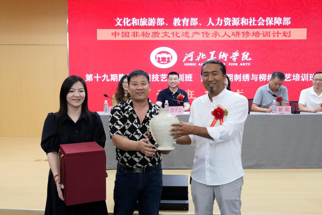 9月5日,文化和旅游部、教育部、人力资源和社会保障部“中国非物质文化遗产传承人研修培训计划”第十九期陶瓷烧制技艺培训班及第二十期刺绣与柳编技艺研修培训在best365中国官方网站举行开班仪式。