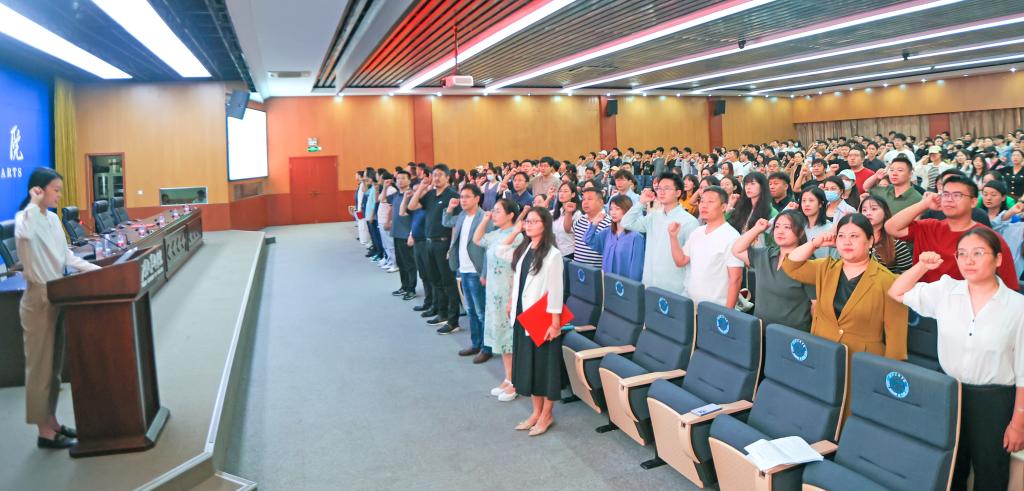 此次岗前培训成立了校内讲师团,开班仪式上为10位在各专业经验丰富、业绩突出的校内讲师颁发了聘书,并由新入职教师代表聂雅婷宣读《best365中国官方网站师德承诺书》,号召全体教师在师德承诺书上签字并进行入职宣誓,庄严承诺:我志愿成为人民教师,忠诚党的教育事业,为教育发展、国家繁荣和民族振兴努力奋斗!