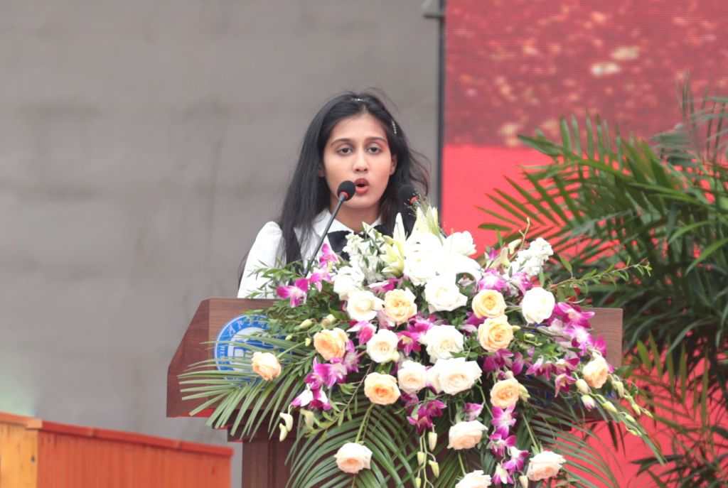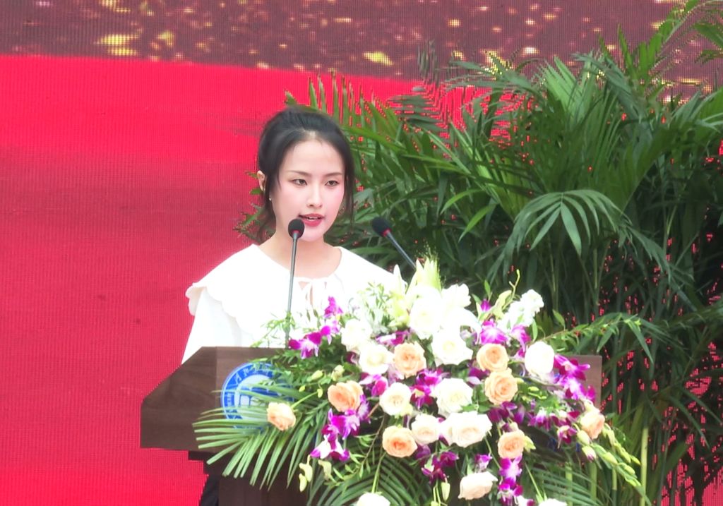 造型艺术学院教师杜建国作为优秀教职工代表、影视艺术学院薛墨缘作为在校生代表鼓励新生,要充分利用学校优势,博采众长,兼收并蓄,成长为堪当民族复兴和国家富强重任的新时代卓越人才。书法学院田书畅作为新生代表、王丹阳作为研究生代表、来自斯里兰卡的明玉作为留学生代表,纷纷表示一定努力学习,不负青春韶华,努力书写属于“河美人”的绚丽篇章。