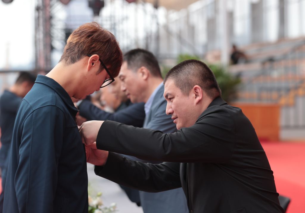 与会校领导为新生代表佩戴校徽