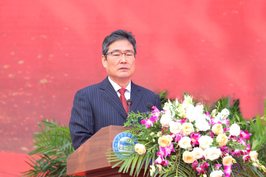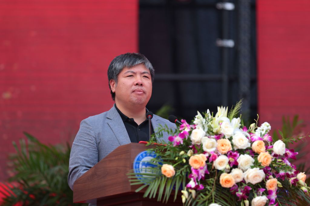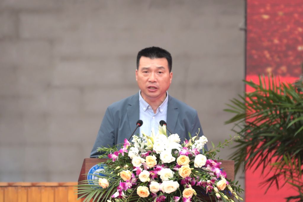 甄忠义致辞。他简要介绍了学校20年来的办学历程,从校园建设、师资队伍、教育教学、科学研究等方面阐述了学校取得的办学成果。他勉励大学生要以“不到长城非好汉”的坚定信心,绽放无坚不摧的“信念”之花;以“不破楼兰终不还”的坚强决心,绽放无所畏惧的“担当”之花;以“不畏苍穹千万里”的坚韧恒心,绽放无往不胜的“奋斗”之花,心怀家国、志存高远,传承校训精神,以青春之我,创青春之国家,成长为“又红又专、全面发展”的河美人,奋力书写不负伟大时代的青春华章。