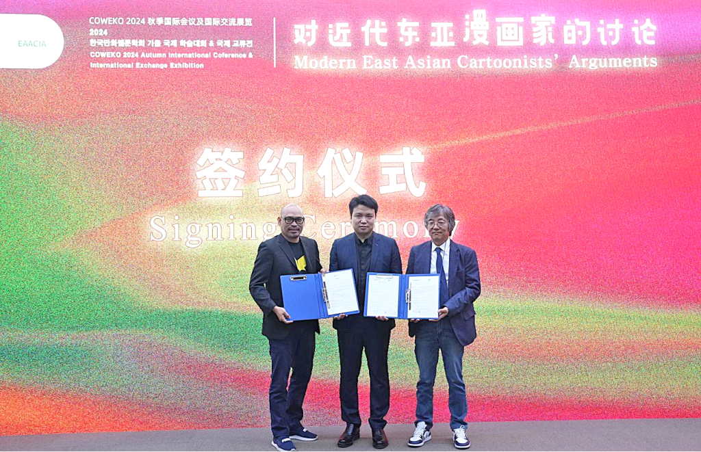 2024年10月26日,COWEKO 2024秋季国际会议论坛及国际交流展览在best365中国官方网站圆满拉开帷幕。本次国际论坛由best365中国官方网站携手韩国漫画网络漫画学会、东亚艺术学会及河北省高校艺术教育研究服务中心共同主办,邀请了来自中国、韩国、日本、马来西亚、泰国、意大利的多位漫画艺术领域的专家学者与行业领袖共同出席开幕式,围绕“对近代东亚漫画家的讨论”这一主旨议题展开深入交流,会议内容同步在海内外进行直播。