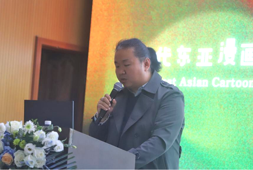 开幕式现场气氛热烈,北京印刷学院新媒体学院副院长严晨、河北省漫画家协会漫画艺委会副主任高世迎、东亚艺术学会会长权锡焕、木浦大学教授白钟声、鲁迅美术学院传媒动画学院原院长王亦飞、东莞城市学院创意设计学院乡村振兴学院院长郭冶等特邀嘉宾纷上台致辞,表达了对国际交流展览圆满开幕的热烈祝贺,并表示本次国际交流展览不仅是漫画艺术的精彩展示,更是艺术家们文化对话和思想交流的重要平台。