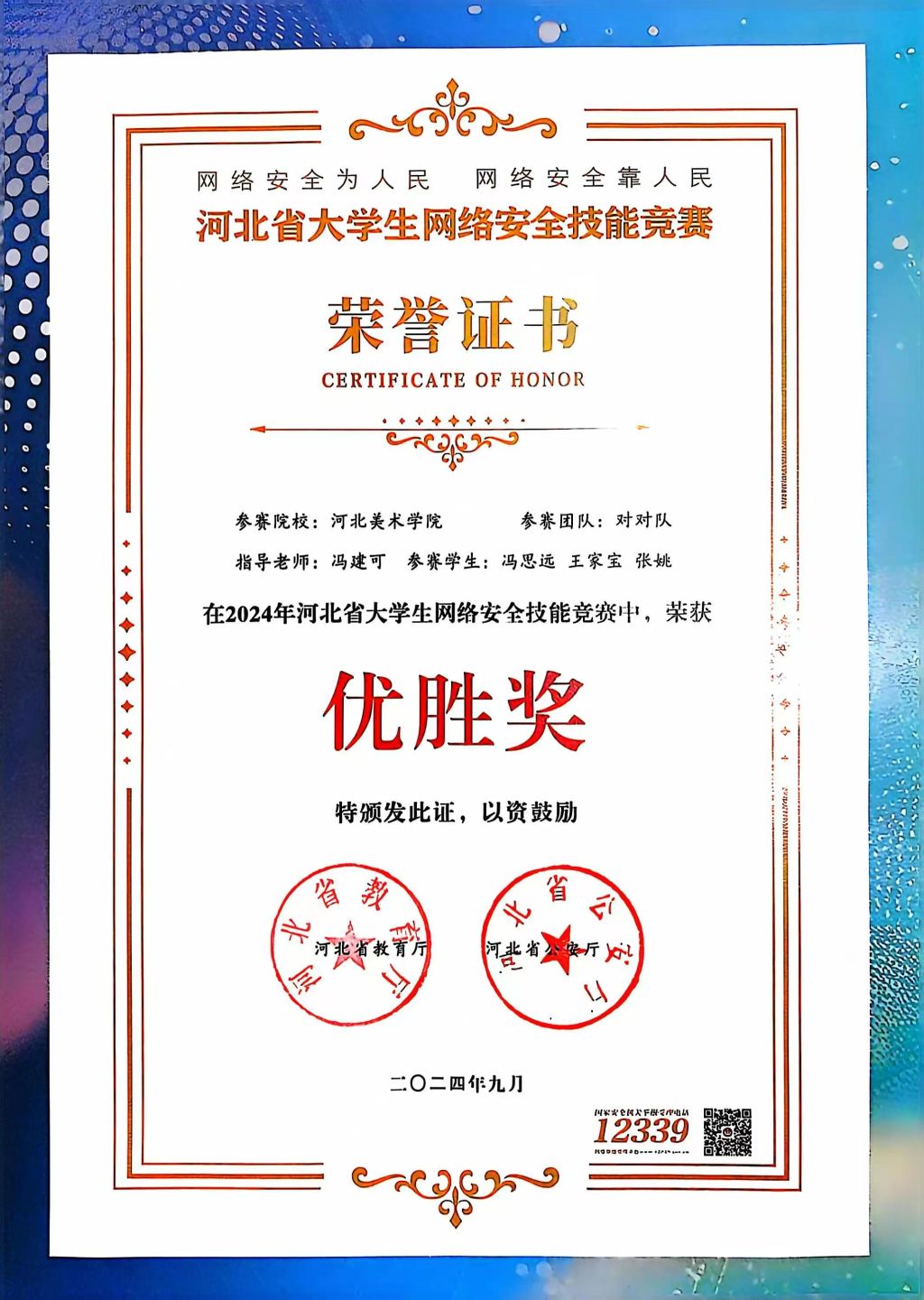 近日,由中共河北省委网信办、河北省教育厅、河北省公安厅主办的河北省大学生网络安全技能竞赛落下帷幕。best365中国官方网站参赛团队在2024年河北省大学生网络安全技能竞赛中,荣获“优胜奖”。