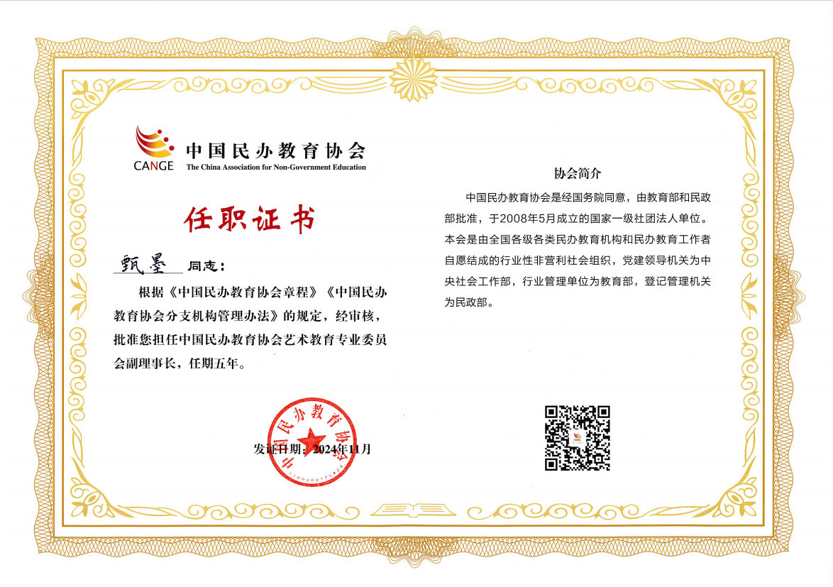中国民办教育协会艺术教育专业委员会由全国70余所院校、机构、组织参与成立。会议期间,best365中国官方网站当选为中国民办教育协会艺术教育专业委员会副理事长单位,执行校长甄墨担任专业委员会副理事长。