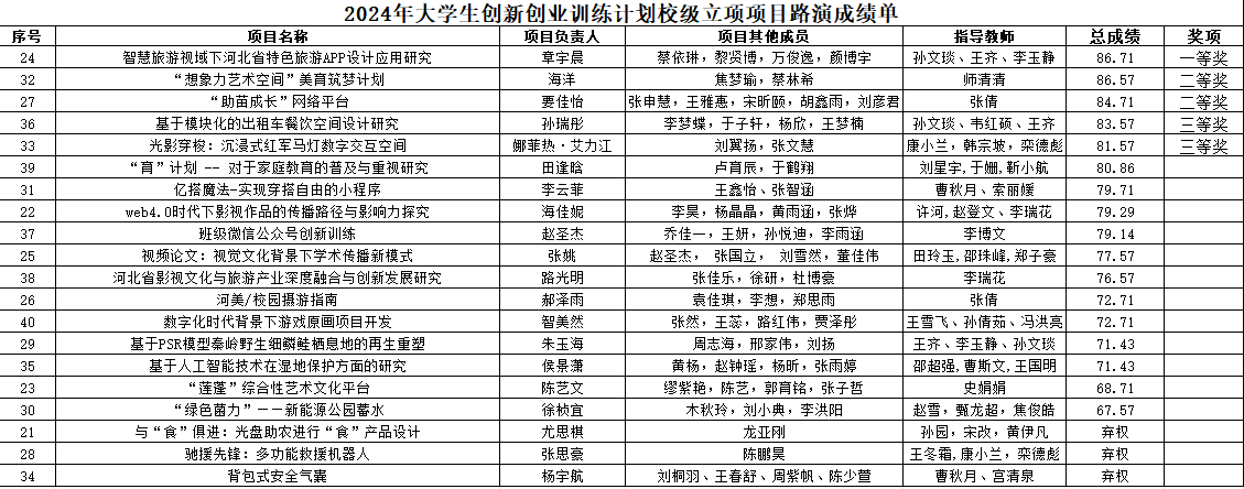 11月16日,由创新创业教育学院组织的2024年大学生创新创业训练计划省级及校级立项项目路演活动成功举办。在本次活动中,对计量电影学领域下的类型电影叙事节奏数据可视化研究、web4.0时代下影视作品的传播路径与影响力探究等40个立项项目进行了评审,由学校督导委、教指委及双创导师成员组成的14名评委老师和162名项目成员、kab大学生创业俱乐部志愿者参加了本次路演活动。