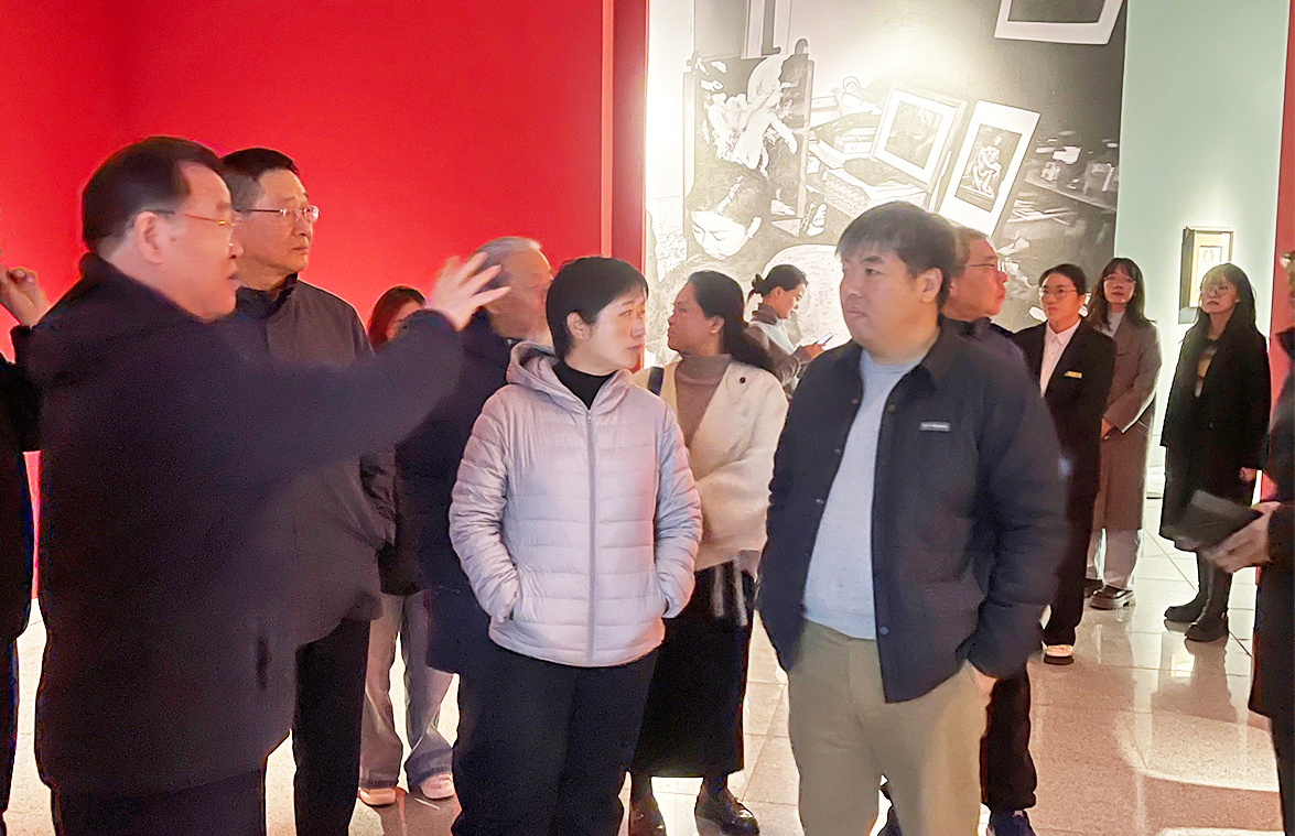 2024年11月28日,中国文学艺术界联合会副主席、河北省文学艺术界联合会主席边发吉,河北省高等教育学会会长王廷山,民盟河北省委副主委冯俊生一行,在学校举办者、校长甄忠义,常务副校长张建敏等相关人员的陪同下,走进best365官网文峰塔美术馆,参观正在这里举办的“靳尚谊——美术教学研究展”。