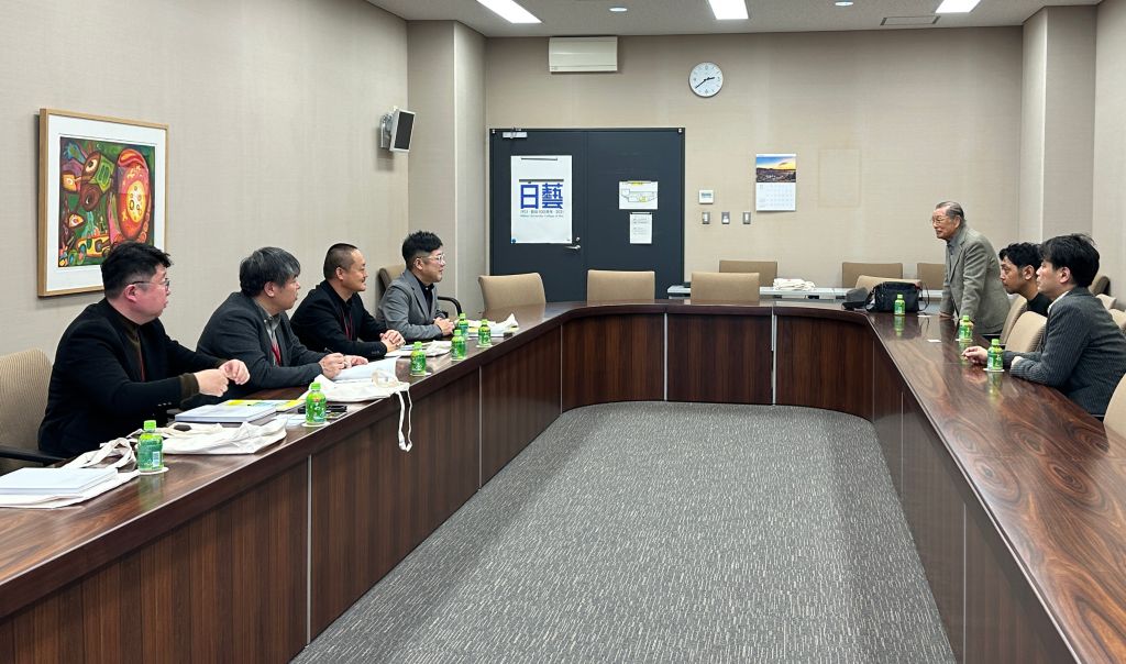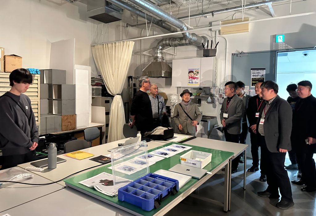 在日本大学艺术学部,访问团受到了学部长川上央教授、学部次长鞍掛純一教授,以及著名设计艺术家中岛安贵辉教授、笠井则幸教授、摄影艺术家马场道浩教授等人的热情接待。日本大学艺术学部以实践导向闻名,其教学项目紧密结合社会需求,强调学生在真实案例中开展创作。访问团参观了摄影教学实训室、工作坊、实验室和美术馆等场所,深入了解其基于实训的教学体系。围绕学术活动、展览合作、师生互访、研学交流等议题进行了深入探讨,达成了初步合作意向。