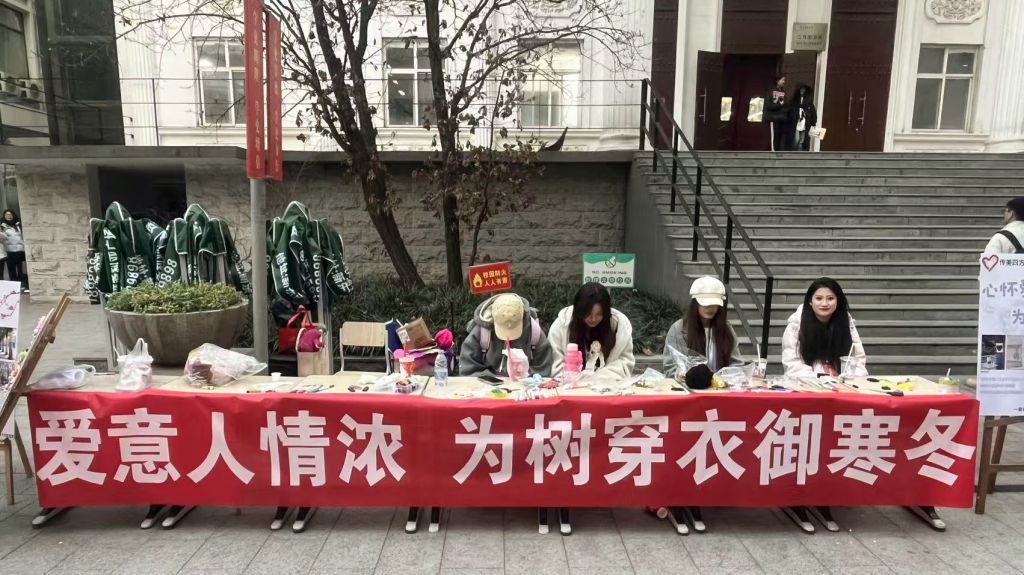 12月4日,best365中国官方网站影视艺术学院传美四方支教团联合社团联合会、自律委员会举办了一场温馨的“为树穿衣”活动。师生们用毛线和画笔,为校园树木披上冬日“新装”,让树木在寒冷中感受到了来自人们的爱与温暖。