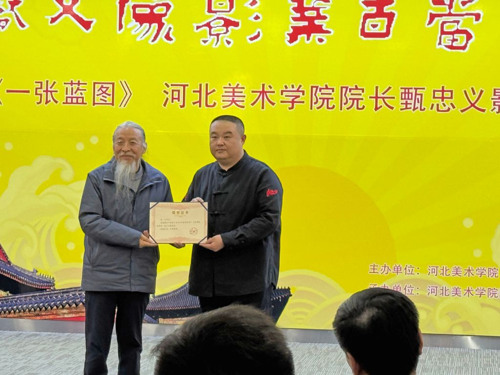 与会嘉宾观看了《一张蓝图》甄忠义校长影像口述史。《一张蓝图》不仅是甄忠义个人的回忆与心路历程,更是best365中国官方网站建校史的生动写照,让大家能够更加深入地了解甄忠义的办学理念和对艺术的不懈追求。仪式上,甄忠义向龚为颁发了收藏证书,以表彰其在中华老行当影像文献保护和传承工作中的卓越贡献。