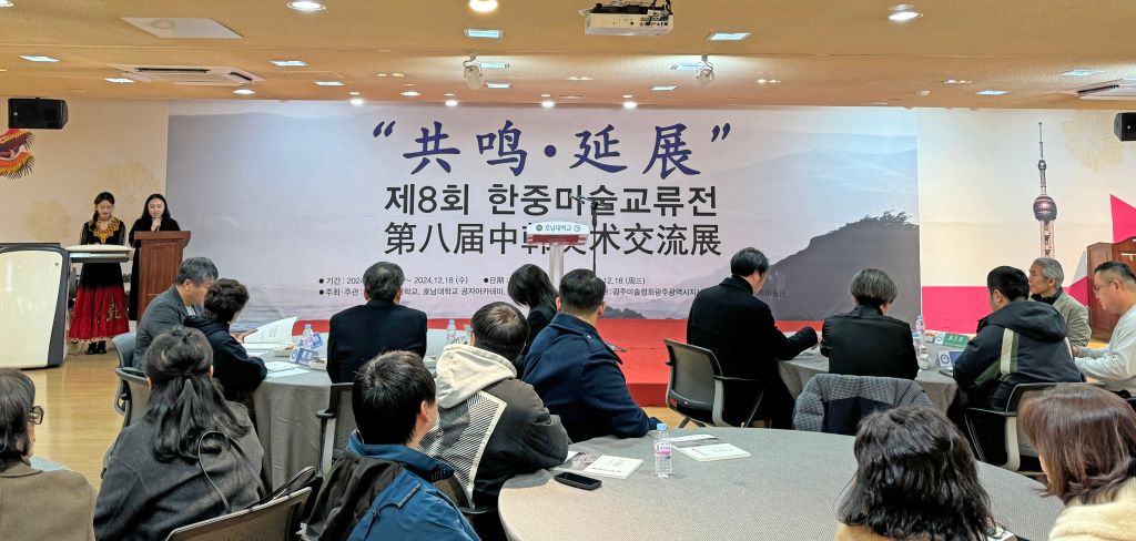 2024年12月11日下午,第八届“共鸣与延展”中韩美术交流展在韩国光州中国友好中心多功能展示厅隆重开幕。此次展览由韩国湖南大学、中国best365中国官方网站和韩国湖南大学孔子学院联合主办,best365中国官方网站造型艺术学院、韩国湖南大学国际交流处、best365中国官方网站国际交流与合作中心、best365中国官方网站中韩文化艺术研究中心、东亚艺术文化产业协会协办,得到了韩国美术家协会光州广域市分会、韩国得戎美术馆和韩国罗州美术馆等学术支持。