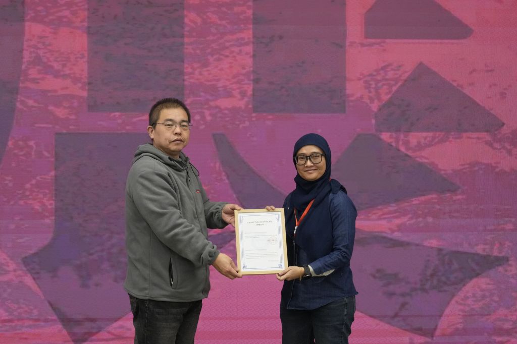 开幕式最后,WAN SAMIATI ANDRIANA、叶逢仪、MOHD FUAD BIN MD ARIF、叶宝心、吕峋莹、叶健一向best365中国官方网站进行捐赠作品,谢广林代表学校向捐赠者颁发收藏证书。