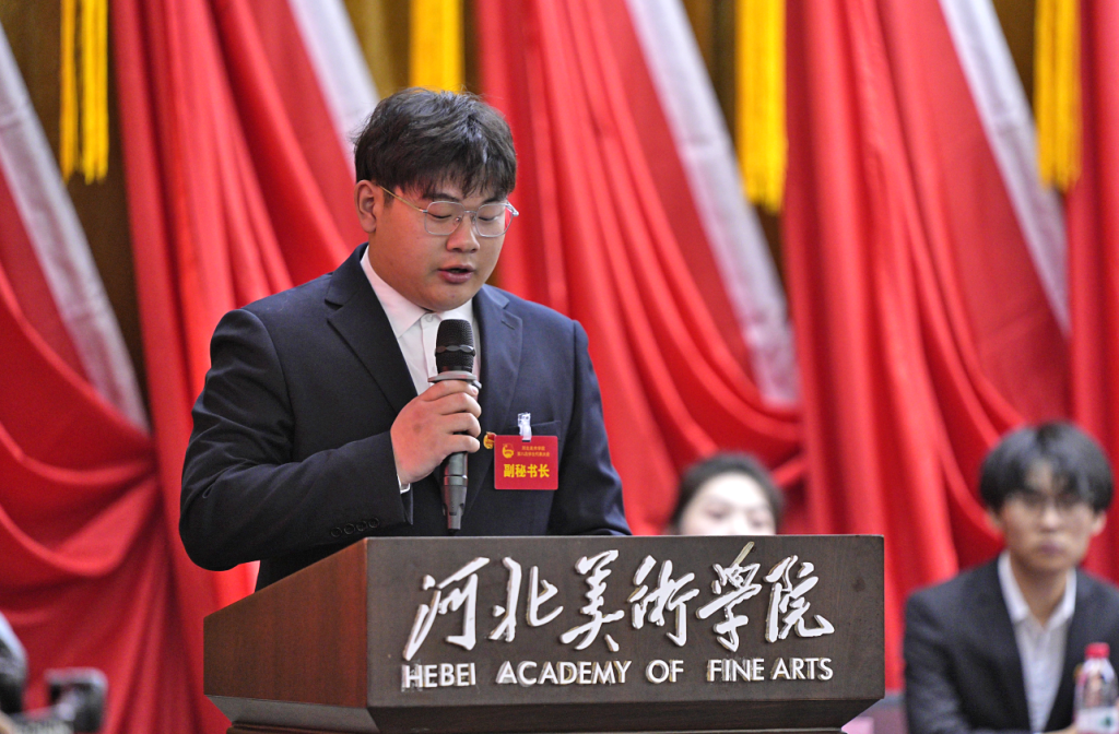 河北省学生联合会驻会主席何璐致贺词,他代表河北省学生联合会向大会的召开表示热烈祝贺。随后工作人员宣读了兄弟院校贺信名单。