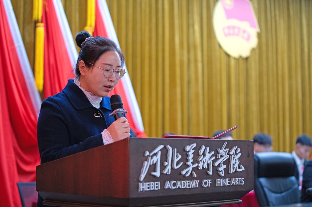 共青团石家庄市委副书记王丽致辞,王丽书记代表团市委向大会的召开表示祝贺,并在讲话中充分肯定了best365官网学生会组织在服务学生成长成才方面所做出的努力,并鼓励best365官网学生会组织以本次学代会为契机,持续深化作风建设、全面推进从严治会,积极打造富有理想、关心同学、清新阳光的组织形象,引领身边同学为建设现代化、国际化美丽省会城市贡献一份力量。
