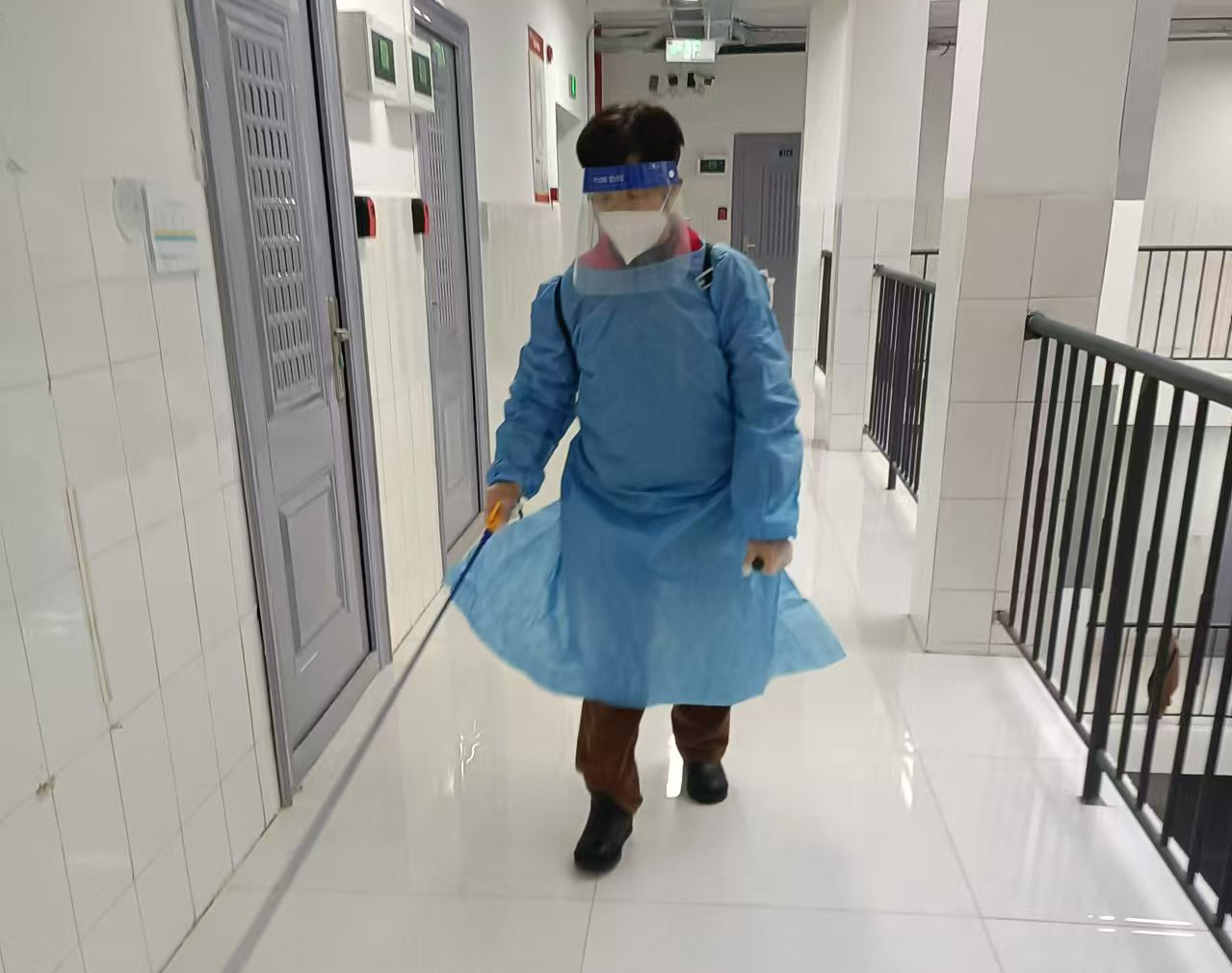后勤管理与服务处调配专业消毒人员,组成多个消毒小组,对校园内的教学楼、图书馆、食堂、宿舍等重点区域进行了全方位、无死角的消毒作业。