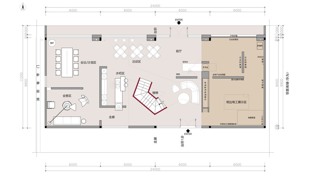 “MDEE”(明达电工展厅)项目遵循环境保护、能效提升、自然融合与安全至上的设计理念,采用独特的解构主义风格,突破了传统建筑结构的限制。在空间设计方面,该项目优化了空气流通,既提高了使用舒适度,又打造出别具一格、舒适且高品质的室内环境,体现出王杰教授团队对现代室内设计趋势的理解与见解。