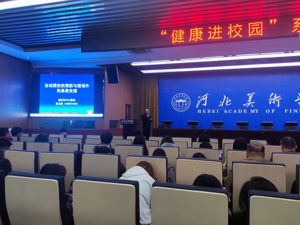 新乐市中心医院院长赵玉顺则结合大学生常见的运动损伤案例,如扭伤、拉伤、骨折、肌肉痉挛等,详细讲解了运动前的热身准备、运动中的自我保护技巧以及运动后的科学放松方法。并针对不同运动项目的高发损伤进行了针对性的预防建议,如佩戴护具、控制运动强度、加强核心力量训练等。