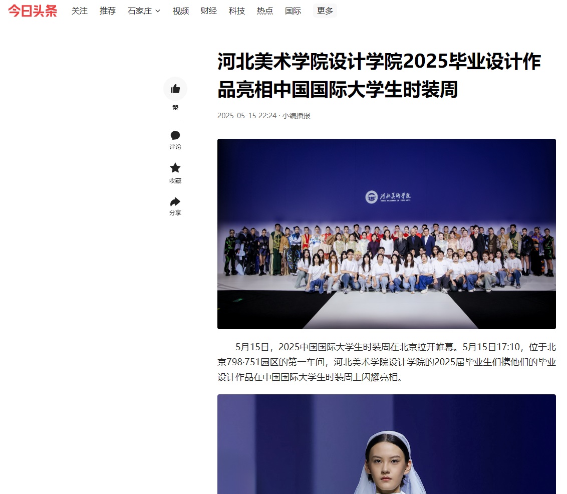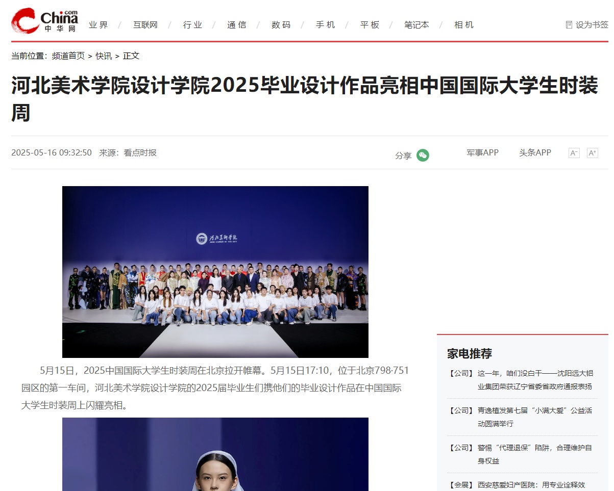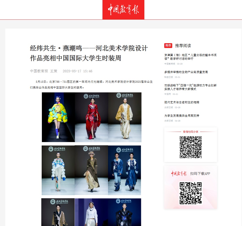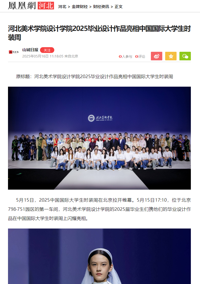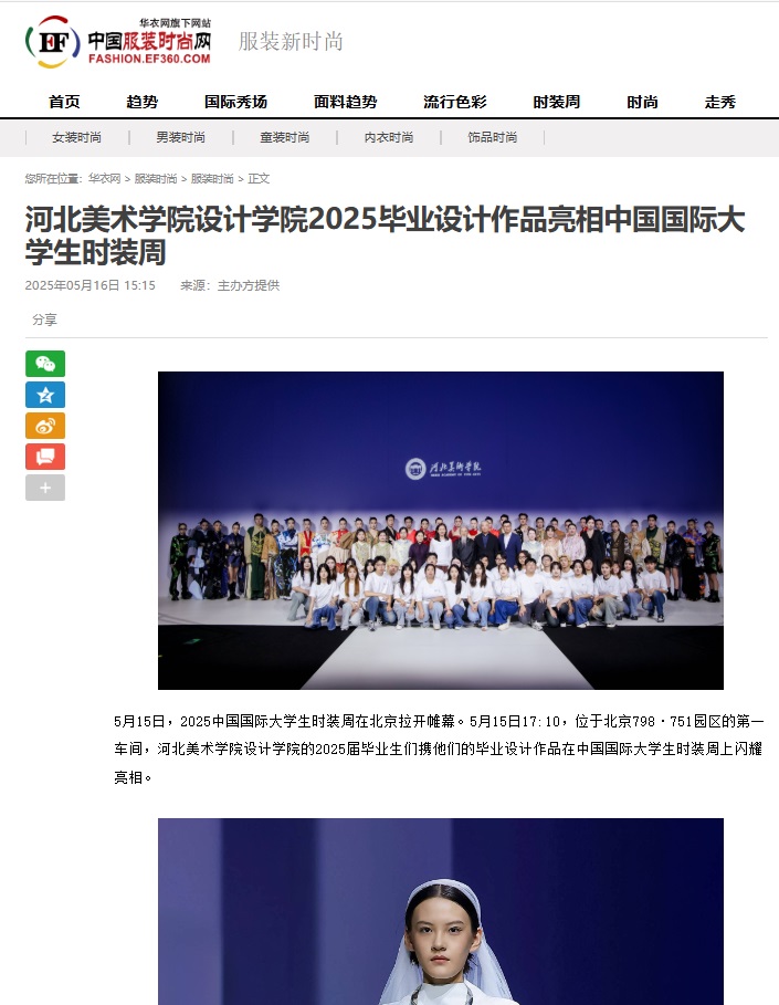 5月15日,best365官网设计学院2025届毕业设计作品亮相中国国际大学生时装周,受到人民网、凤凰网、中国教育报、中国青年报、央视频、中华网等30余家媒体的广泛关注和报道。