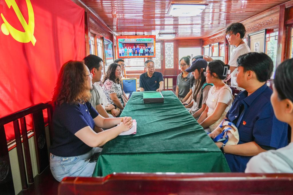 在校园考察环节,党员师生代表参观了学校的红色文化情景园、马克思主义学院、雕塑院直属党支部等红色文化地标。